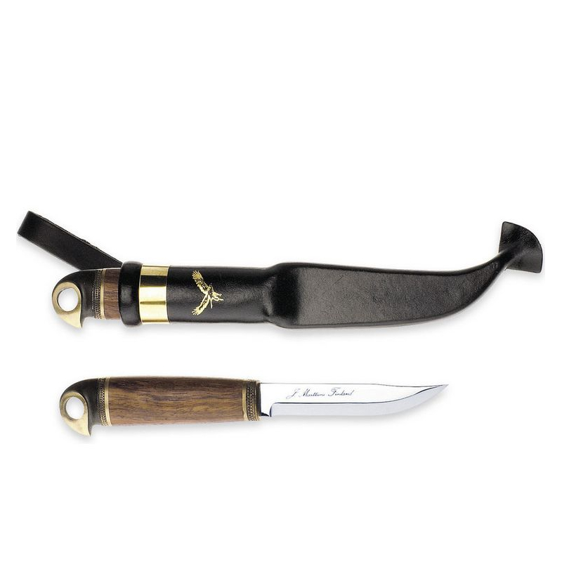 Umelecký poľovnícky nôž z exkluzívnej série Marttiini so zberateľskou hodnotou. Dominuje mu ručne odlievaná bronzová hlavica v tvare orlej hlavy a rukoväť z prémiovej fínskej brezy. Dokonalé spojenie funkčnej ostrosti a severskej elegancie.