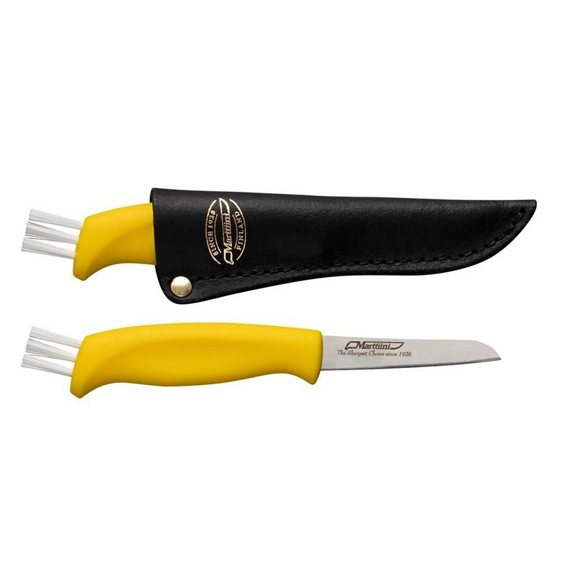 Štýlový a funkčný pomocník pre každého hubára. Fínsky nôž Marttiini Mushroom Knife s ergonomickou plastovou rukoväťou, ostrou nerezovou čepeľou a integrovanou kefkou na okamžité očistenie vášho úlovku priamo v lese.